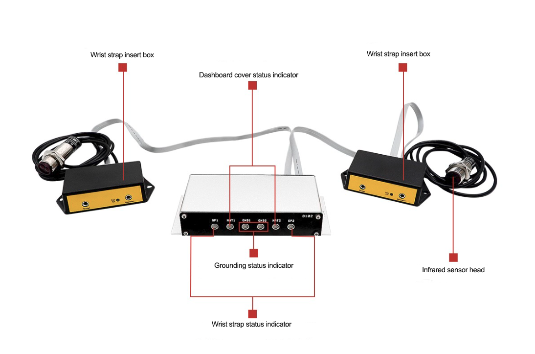 Monitoring at the same time 4 Dual-wire wristband and monitoring for each work station 2 Anti-static mat and 2 A hard ground connection Independent wrist strap plug box is more convenient to install and use